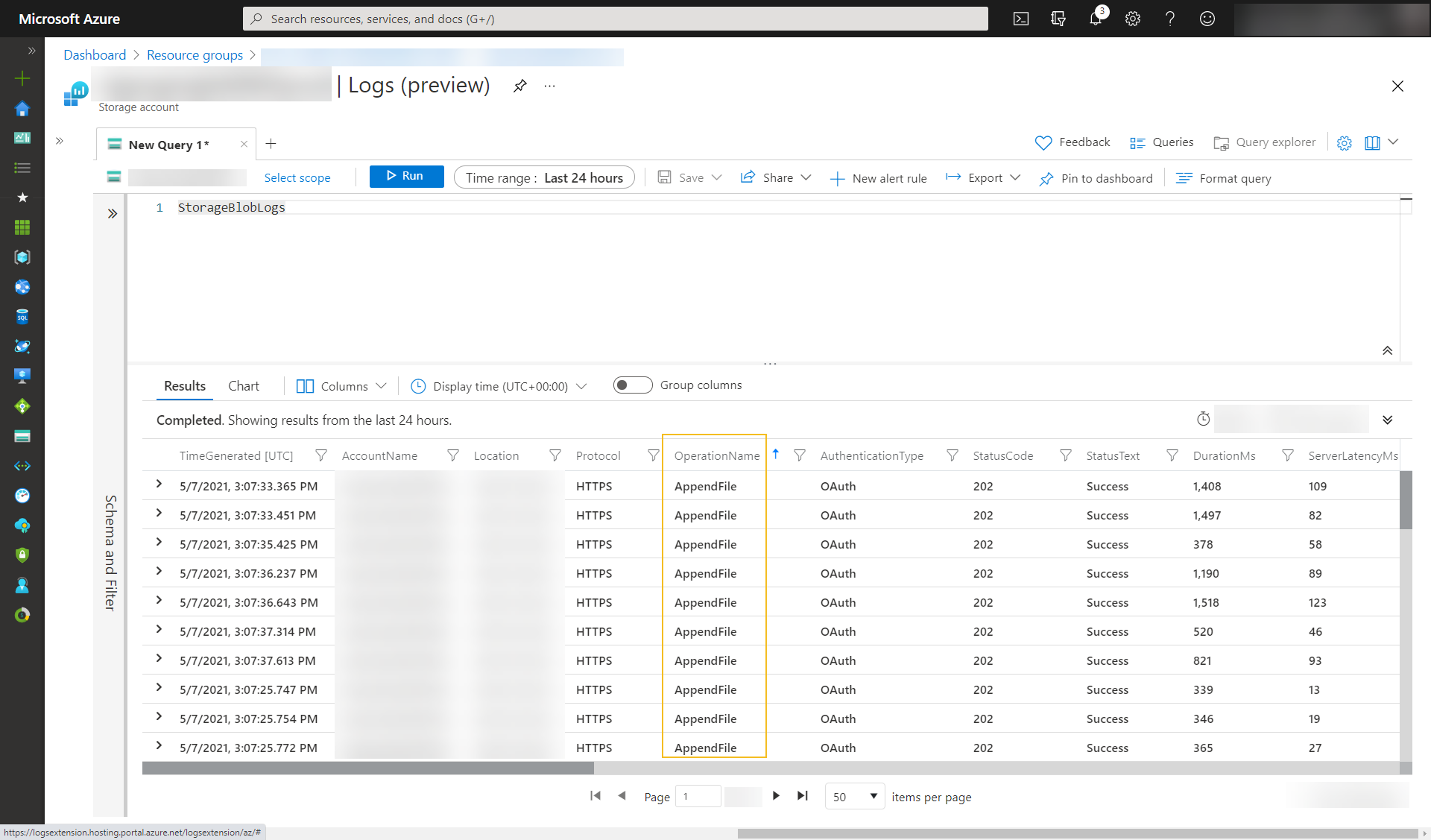 我有一个日志分析工作区,并为一些Azure存储帐户创建了一些(blob)诊断设置。现在我在分析blob流量。