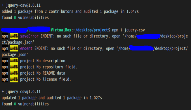 npm i jquery-csv 然而,每当我尝试的时候,npm警告我它找不到package.son