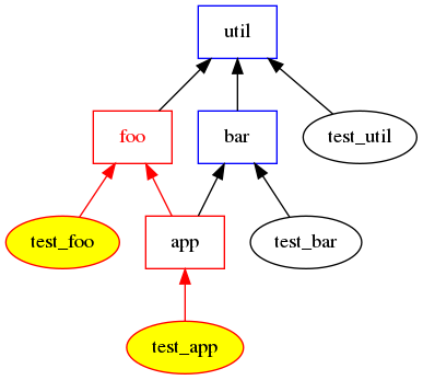 分析图表很容易看出,app中的更改只会导致执行test_app。而util中的更改将导致执行所有的测试。