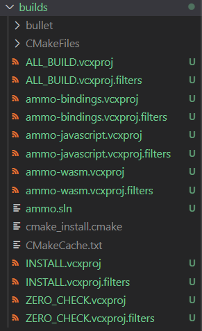 set(WEBIDL_BINDER_SCRIPT "C:/Program Files/emsdk/upstream/emscripten/tools/webidl_binder.py")现在,如果我运行cmake -B builds,那么cmake似乎没有错误地运行,但是它输出了以下文件: