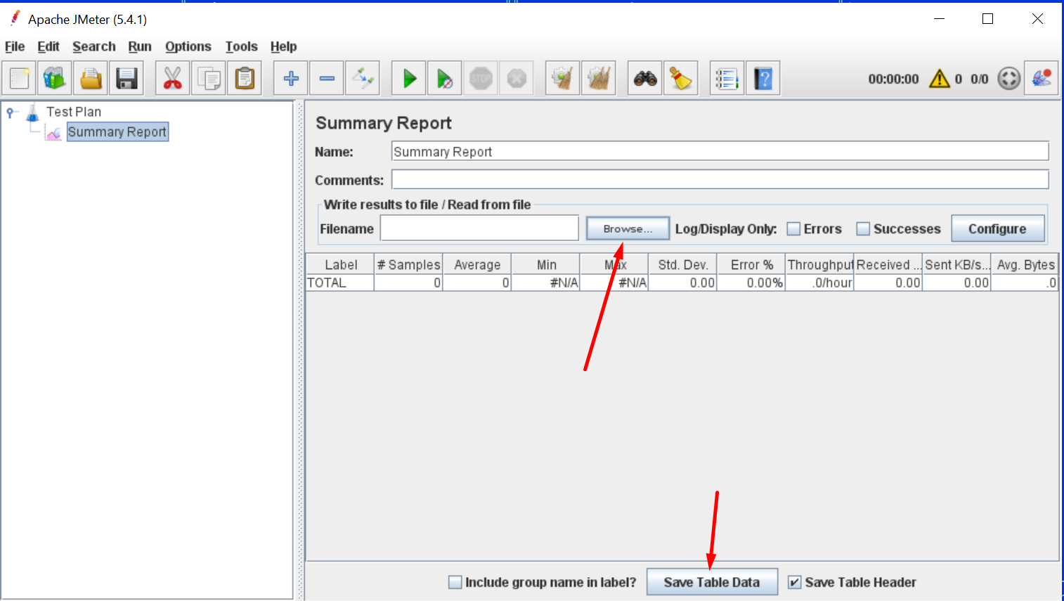 以及具有解释/分组示例结果、计算平均响应时间等输出的侦听器,可以使用“保存表数据”按钮存储输出