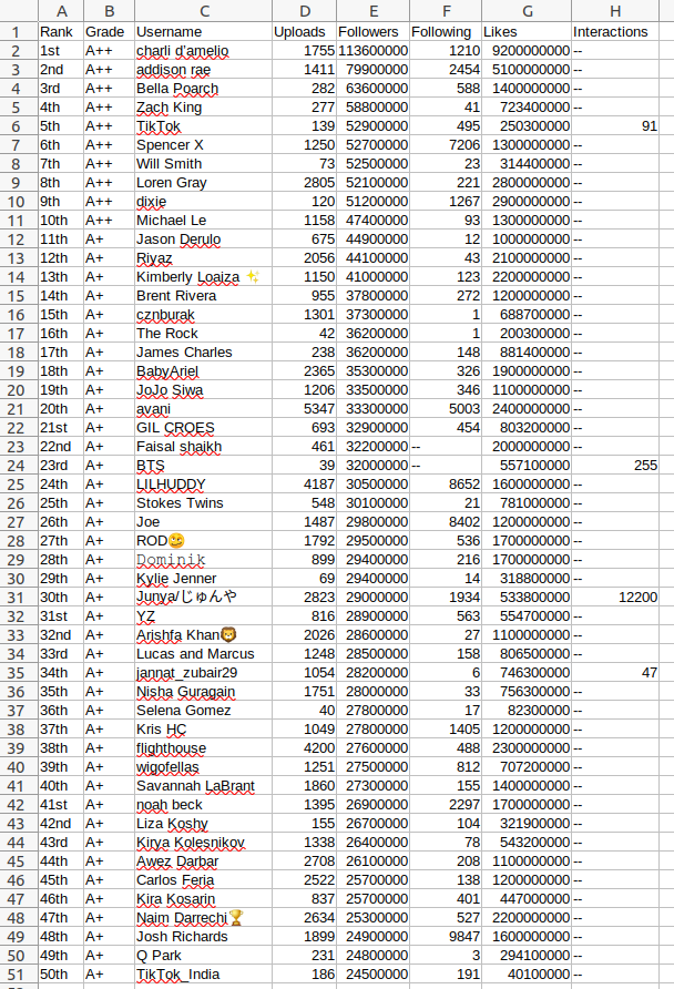 with open("Top 50 TikTok users sorted by Followers - Socialblade TikTok Stats _ TikTok Statistics.html", "r", encoding="utf-8") as file: