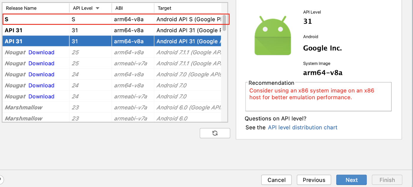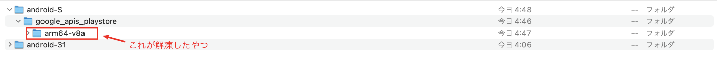 例如,google映像的路径是~/Library/Android/sdk/system-images/android-S/google_apis_playstore/arm64-v8a