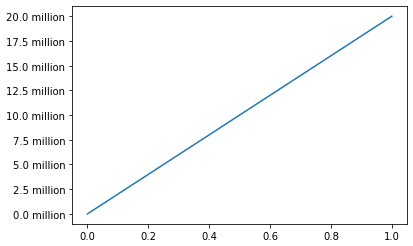 我在ScalarFormatter中找不到一个将1e6替换为“百万”的方法,但我确信matplotlib中有一种方法可以让您在真正需要的情况下做到这一点。