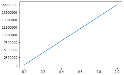 ax.plot([0, 1], [0, 2e7])