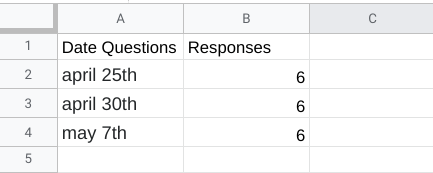 在google表单的选项列表中(我们的上限是6人注册),如果4月10日有4人,4月17日有6人,4月24日有1人,脚本将从Google表单中删除4月17日的问题。我在Google页面上有一个计数论坛,用来计算每天注册的总人数,所以这是列表中对应的每一天的单个参考单元格的一个简单范围。