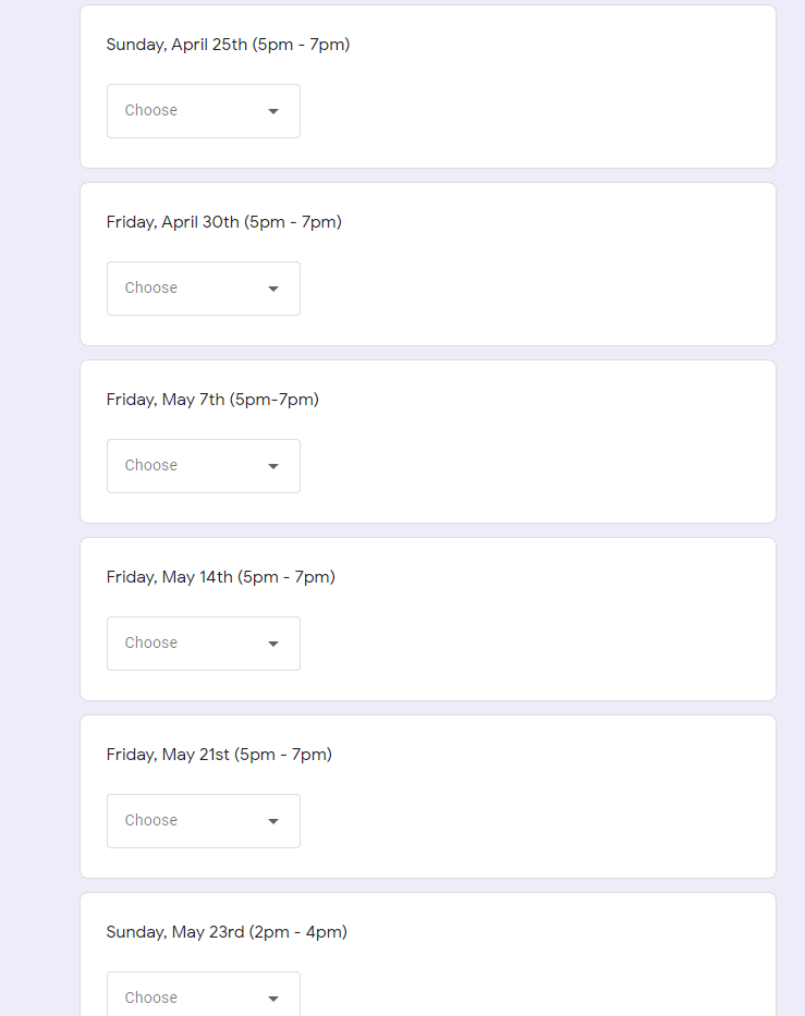 我已经搜索了许多其他的答案,但还没有找到解决办法。我有一个谷歌表单,客户用它每周报名参加志愿者活动。我们填写了一年的所有周,这样客户就可以通过并注册他们感兴趣的各个星期。寻找一个脚本,可以引用链接谷歌表中的答案来更改表单上的问题。