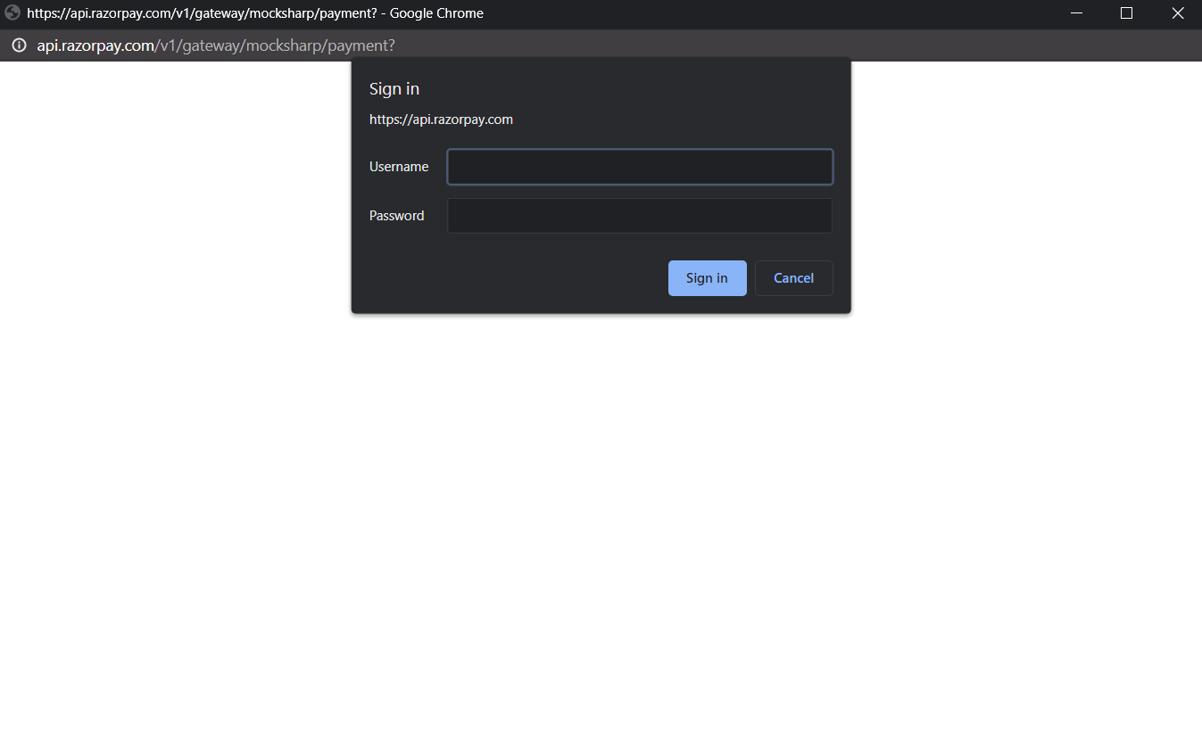 我将Razorpay API集成到我的MERN应用程序中。我创建了一个Razorpay实例,并将options变量传递给它。一切正常工作,除了当我点击支付₹100按钮,一个新的窗口打开,并要求用户名和密码。我已经通过了从Razorpay仪表板生成的测试模式key_id。以下是options对象: