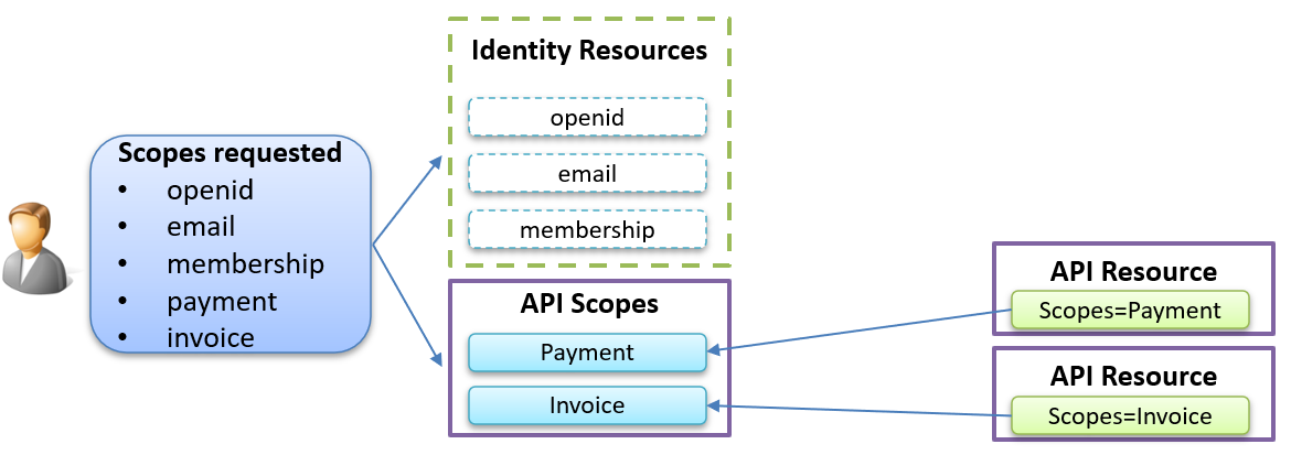 你需要系一个ApiScope。您需要一个包含一个或多个ApiScope的ApiResources。