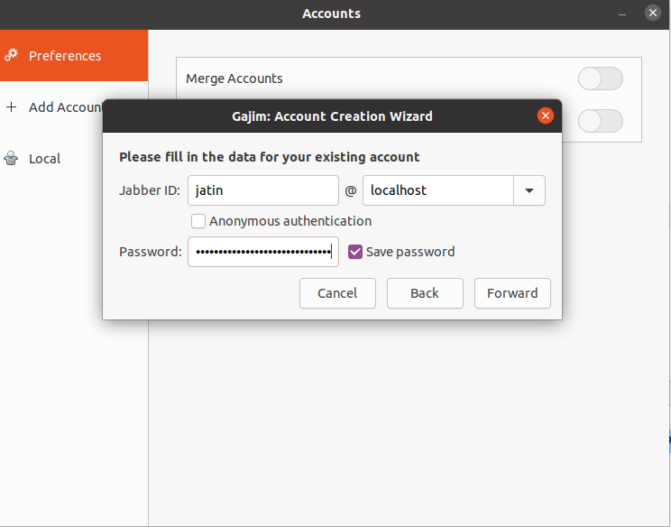 username_key = "user"但是如何从Gajim或Java代码进行身份验证呢?
