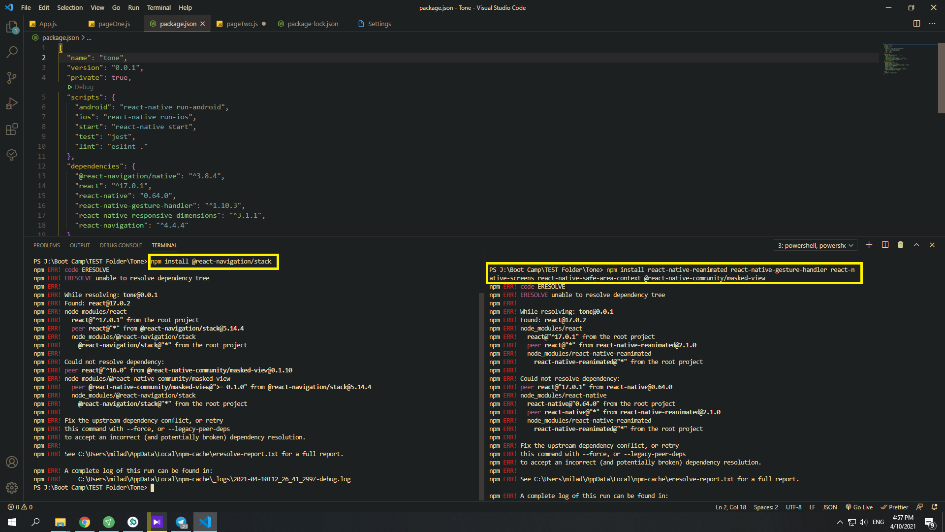 npm install --legacy-peer-deps @react-navigation/stack --force
