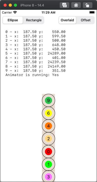 还添加了分段控件,以选择collisionBoundsType,并将视图完全覆盖在彼此之上或稍微偏移它们: