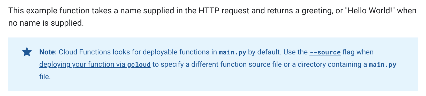 如果我们查看用于部署函数的gcloud命令的文档和--source标志,我们可以看到以下内容: