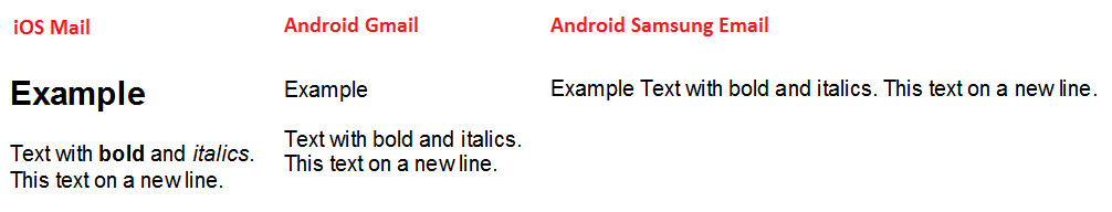我为Android尝试了很多使用本机代码的方法,但是我无法让Gmail正确地呈现HTML。我在三星的电子邮件中找到了几种不同的方法,我会给出一个我认为应该怎么做的方法。