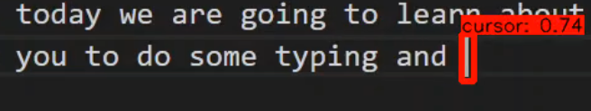 我目前正在做一些研究,以检测和定位一个文本光标(你知道,闪烁的矩形形状,当你在你的电脑上键入字符位置)从屏幕记录视频。为此,我使用自定义对象数据集对YOLOv4模型进行了培训(我从这里获得了一个参考),并计划实现跟踪移动光标的DeepSORT。