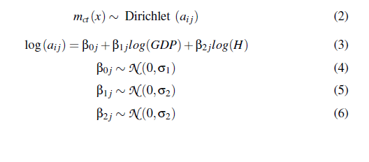 log(a0[i,j]) <- m0[j] + m1[j] * mat.x[i]+ m2[j] * mat.x2[i] # m0 = intercept; m1= coeff log_GDP; m2= coeff log_h