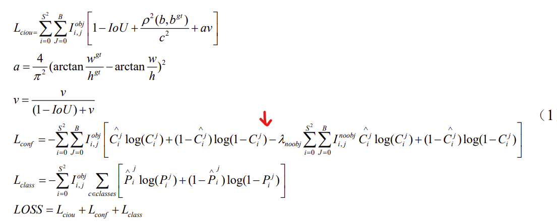 公式1是更正确的公式,因为公式的那个项是检测到对象时的置信损失。而置信损失是基于交叉熵误差的。
