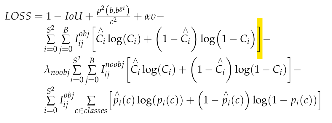 我在主要的YOLOv4论文中找不到总损失函数。然而,我从两篇不同的论文中发现了两个不同的公式(在下面的图像中突出显示/标记了差异)。哪个公式是正确的YOLOv4?的默认全损公式