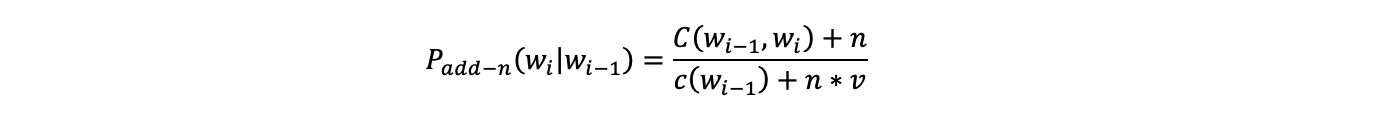 probabilities[bigram] = (value + n) / (word_dict.get(first_word) + (n * len(word_dict)))