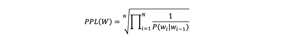 给出计算双图的困惑性的公式(加-1平滑的概率),
