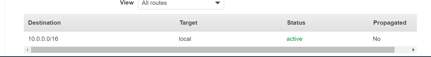 它只有默认路径。我假设来自子网10.0.0.0/16的所有通信量都指向此路由中关联的子网中的实例。对吗?