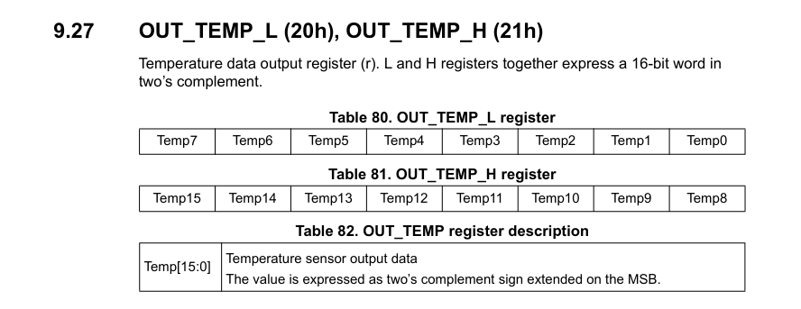 我想知道在这个捕获器LSM6DSO32上读取温度的最佳方法是什么,这里是寄存器