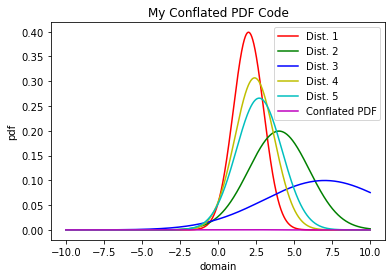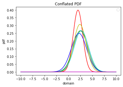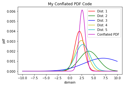 return conflation并将PDF定义为2d数组( FxN矩阵、F分布PDF和离散变量x的N长度)。