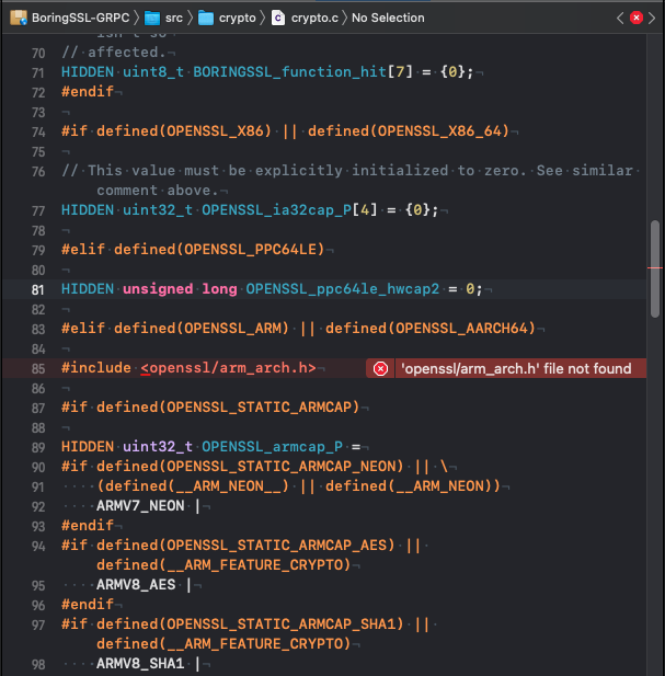 当Xcode说'openssl/arm_arch.h' file not found时,我需要做什么?