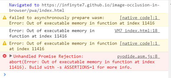 这是内存错误。目前的pyodide大小大约是。25那么,有没有办法消除这些错误呢?我如何为科学项目构建非常小的而不是,使其也在iOS v12上运行?