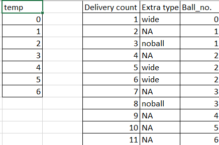 =XLOOKUP(temp No value, column reference of the ball count, column refernce of the Delivery no)
