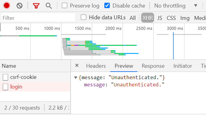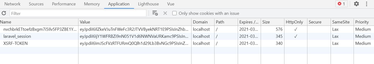 }我在没有加密中间件的情况下对此进行了检查--它成功地记录了用户的日志,但是我在路由中添加了中间件,它说您的请求未经身份验证。我按照官方的Laravel-7文档实现了一切,我不知道为什么它说未经认证,附加IMG以获得更多细节。