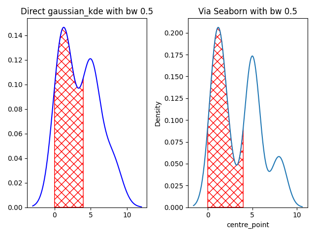 在上面的图片中,如果数据直接输入到gaussian_kde中,则左边是分布。如果数据输入seaborn kdeplot,则正确的绘图是数据的分布。