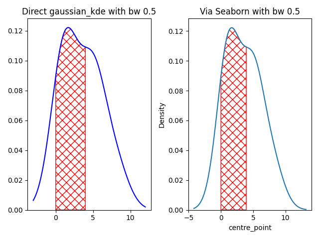 print ( f'auc using gaussian_kde : {auc_bond_1 * 100:.1f} and auc using via seaborn : {auc_bond_2 * 100:.1f}' )