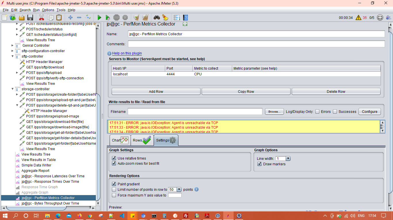我在参考了本文之后使用了PerfMon JMeter插件https://www.blazemeter.com/blog/how-monitor-your-server-health-performance-during-jmeter-load-test