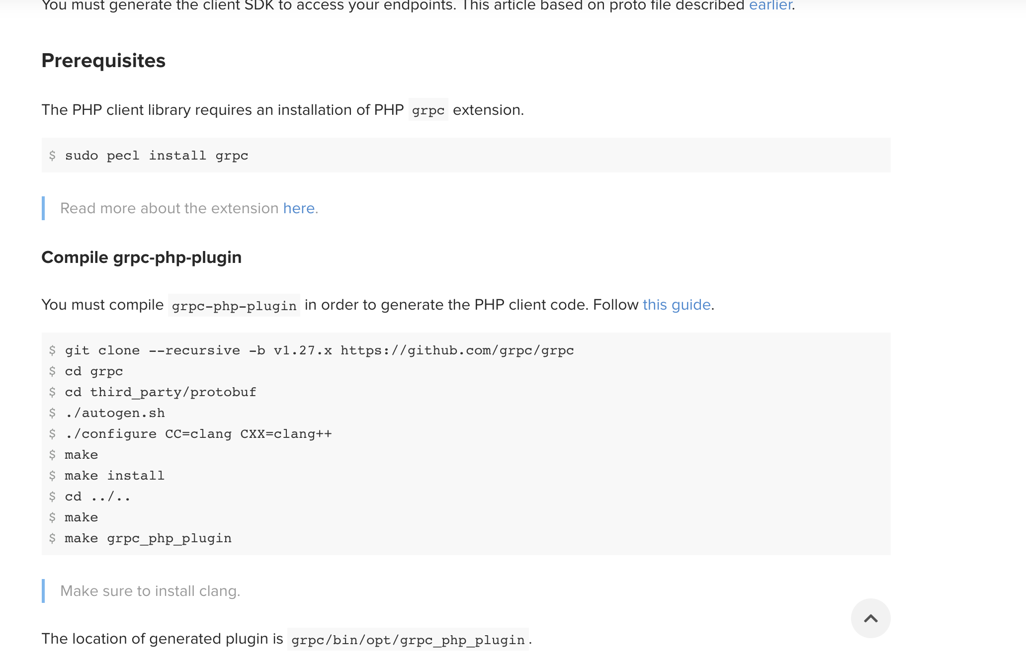 我正在尝试学习这个gRPC的链接教程。几个小时后,我被困在grpc_php_plugin安装上了。于是开始寻找解决方案,我在GitHub问题上发现了一个类似的问题。解决办法是:
