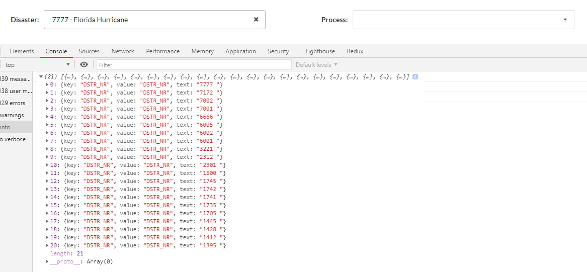 let disasterVals = result.filter(i => i.name === "DSTR_NR");