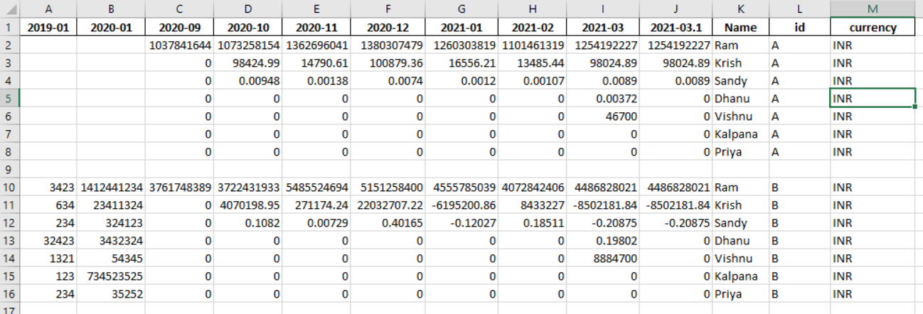 3 0.034803 0.335773 0.563574 ... 0.580068 0.949062 Dhanu A INR>>> BASECOLS = ["id", "currency", "Name"]