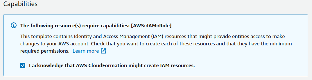 现在,我知道在使用AWS时,我们需要执行命令来创建具有以下参数--capabilities CAPABILITY_IAM的堆栈。