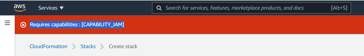 在cloudformation上创建堆栈时,我会得到Requires capabilities : [CAPABILITY_IAM]错误。