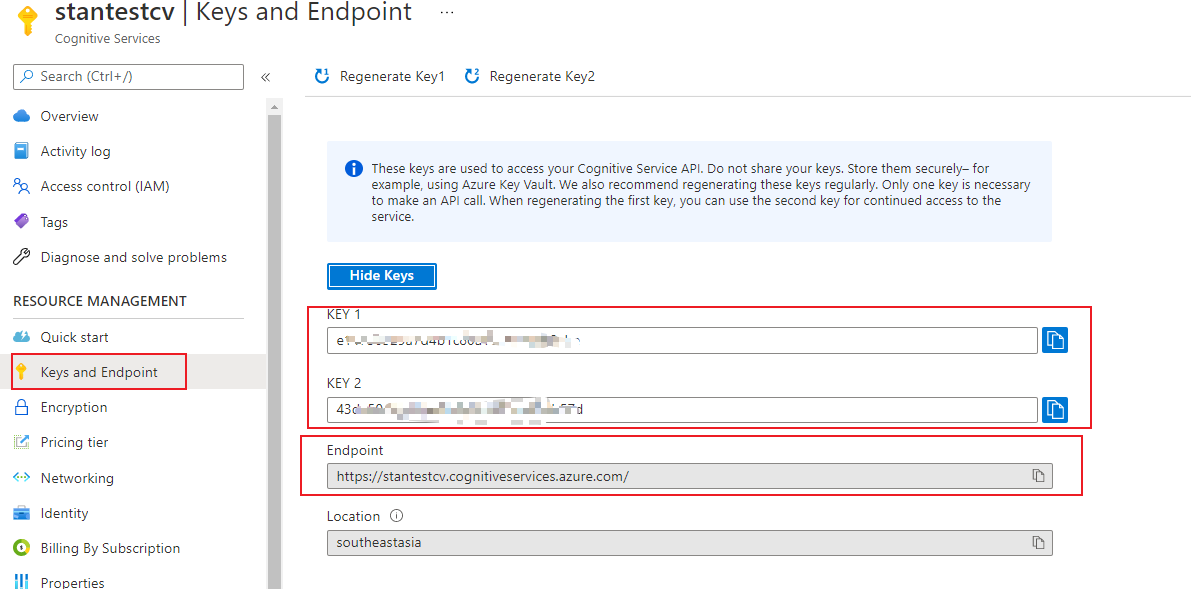 您可以在这里找到键和端点: