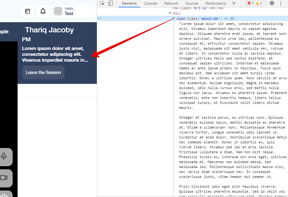在我的react应用程序中,我有一个bio部分以及名字,当某人的个人简历很长时,我会显示(‘.’)。为此,我使用了css文本溢出属性。这是CSS代码