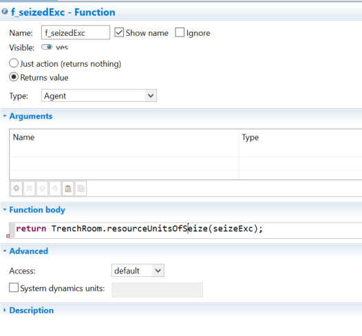 我有一个战壕代理,这是一种材料型agnet。它在一个名为seizeExc的换能器流块中筛出了一台来自excavatorFleet的挖掘机。因此,我使用了以下函数,并得到了以下错误:我尝试使用相同的代码,但它没有工作。