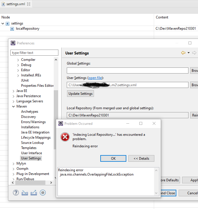 at org.eclipse.m2e.core.ui.internal.preferences.MavenSettingsPreferencePage$2.runInWorkspace(MavenSettingsPreferencePage.java:263)
