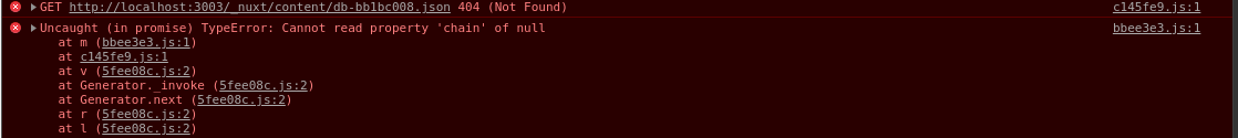 当我运行生产模式时,我无法访问与nuxt/content一起使用的文件,您可以看到出现在我的控制台中的错误。