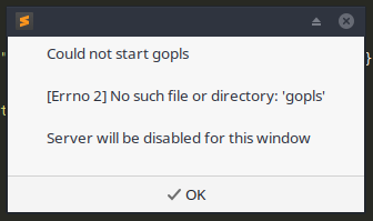 在崇高文本3上安装LSP服务器,然后启用LSP: Enable Language Server Globally >Selectedgopls中的gopls。
