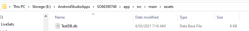 03-06 09:32:52.787 5341-5341/a.a.so66390748 D/CPYDBINFO: Initiating copy from asset fileTestDB.db to /data/user/0/a.a.so66390748/databases/TestDB.db