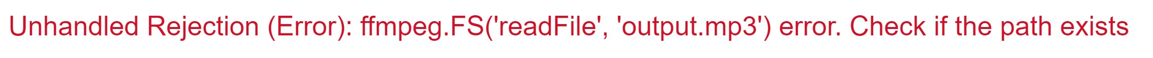 const data = ffmpeg.FS('readFile', 'output.mp3');在output.mp3生成并存储在内存中之前运行。