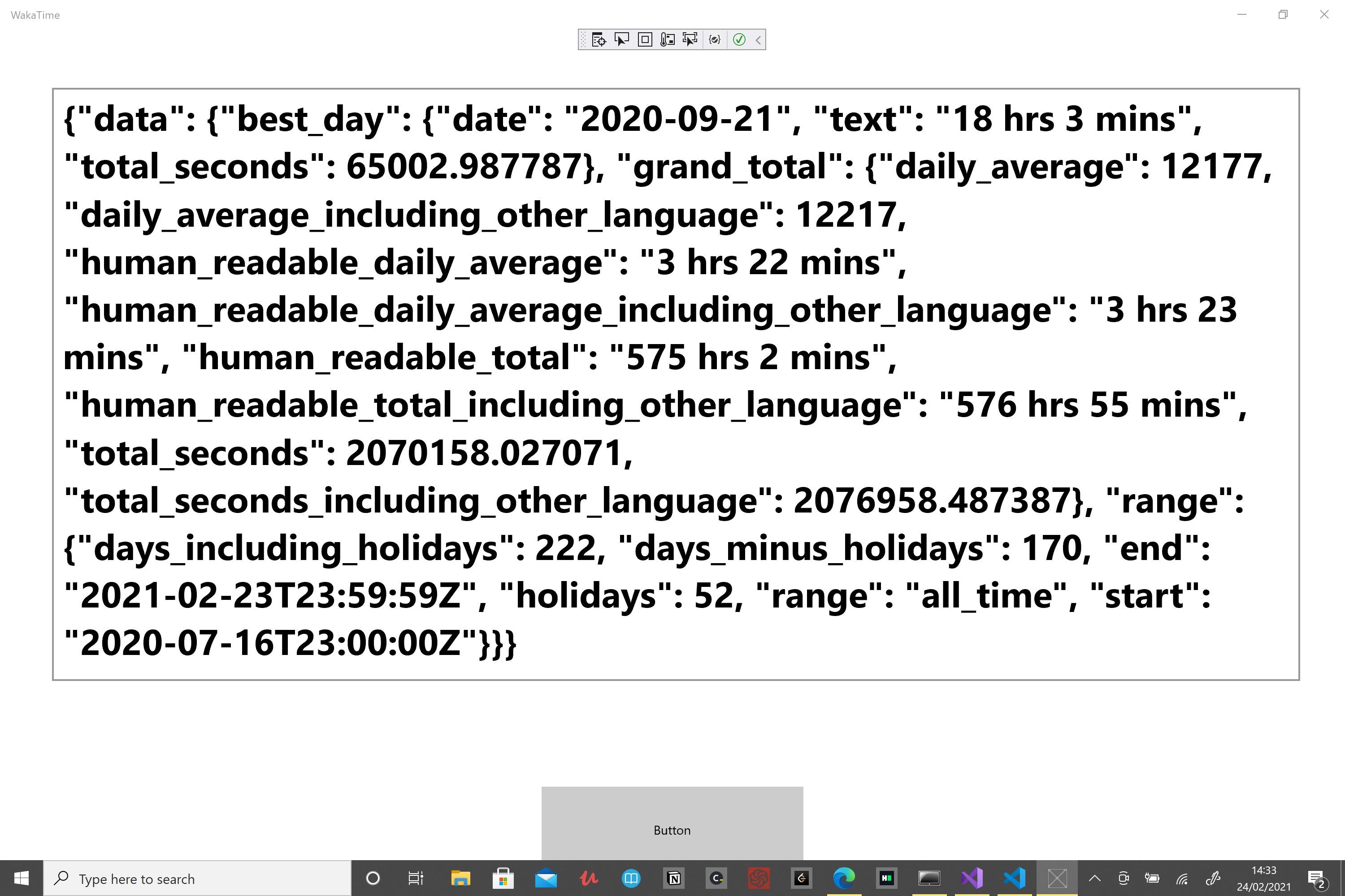 我正在尝试如何访问JSON文本( data.best_day.text )的一个部分,例如(在JavaScript中),data.best_day.text将给18小时3分钟的时间。我想为这个UWP应用程序做同样的事情。我读过一些资料,但它们不起作用,或者太复杂,无法理解。任何帮助都将不胜感激。:)
