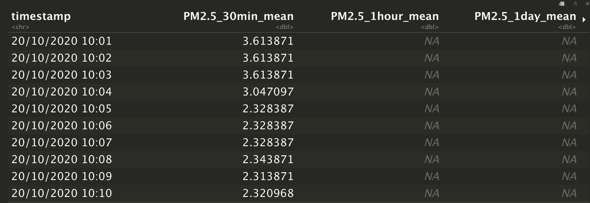 Plume_2$PM2.5_1day_ <- TTR ::SMA(Plume_2$pm2.5, n=1441)