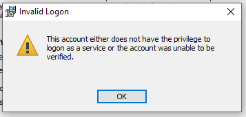 单击“作为服务属性登录”中的“确定”以保存更改。